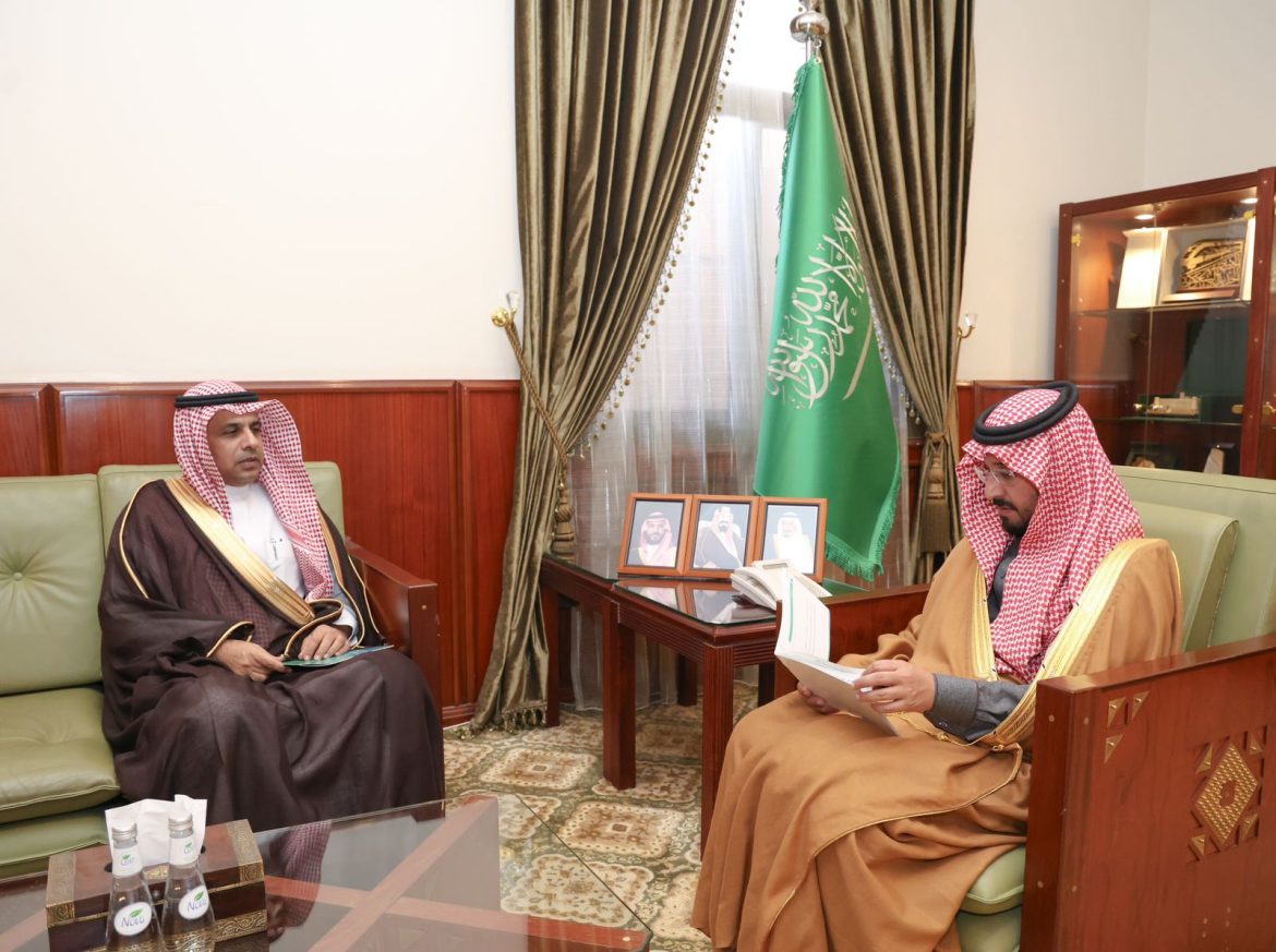 استقبل صاحب السمو الملكي الامير فهد بن محمد بن سعد بن عبدالعزيز محافظ الخرج بمكتبة بديوان المحافظة اليوم الاربعاء الموافق ١٤٤٦/٠٦/١٠هـ سعادة مدير التعليم بالخرج الاستاذ عبدالله بن عاقل الزايدي .