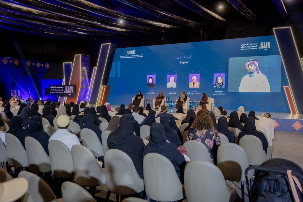 شهد البرنامجُ الثَّقافيُّ المصاحب لمعرض الرِّياض الدّولي للكتاب 2025، الذي تنظِّمُه هيئةُ الأدب والنَّشر والتَّرجمة، إقامةَ أُولى الأمسيات الشِّعريَّة مساء أمس الخميس، بمشاركة ثلاثِ شاعراتٍ عربيَّات هنَّ سكينة حبيب الله من المغرب، وروضة الحاجّ من السُّودان، وتهاني الصّبيح من المملكة العربيّة السّعوديّة، وأدارت الأمسيةَ الدكتورةُ منال العمري.