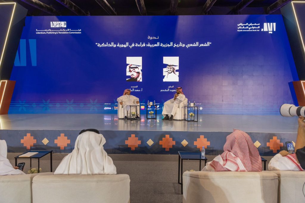 أُقيمتْ مساءَ أمس الخميس ضمن أنشطة البرنامج الثَّقافيّ المصاحب لفعاليّات معرض الرّياض الدّولي للكتاب، الذي تنظِّمُه هيئةُ الأدب والنَّشر والتَّرجمة، ندوةٌ بعنوان “الشّعر الشّعبيّ وتاريخ الجزيرة العربيّة.. قراءة في الهويّة والذّاكرة”، قدمها الأستاذ سعد الحافي، وأدارَها الأستاذ سعود المقحم، الذي استهلَّ بشكر هيئةِ الأدب والنَّشر والتَّرجمة على اهتمامها بالشّعر والشُّعراء، باسطًا لمحاتٍ من سيرة الضَّيف الحافي، مُفسِحًا المجالَ له للحديث.
