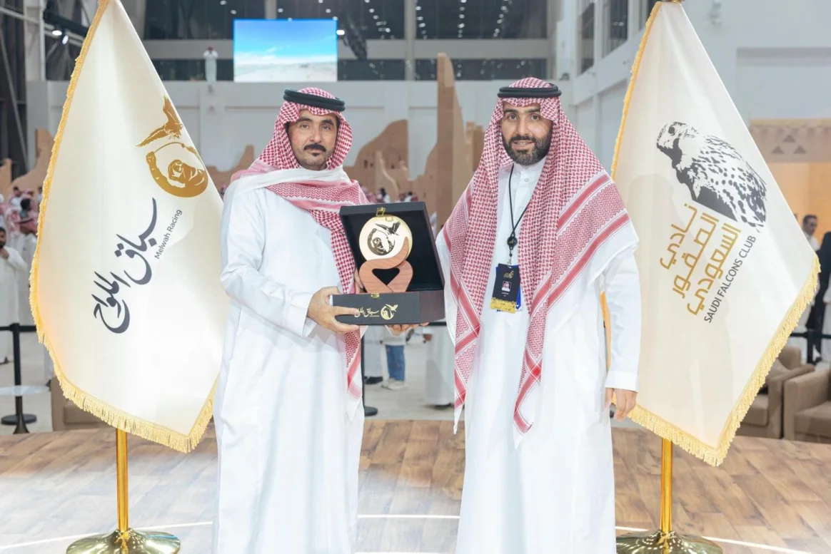 تُوِّج فهد المنصوري بالمركز الأول بصقره “رفسان” في الشوط الخامس من سباق الملواح، ضِمن فعاليات معرض الصقور والصيد السعودي الدولي 2025 بمركز الرياض للمعارض في مَلهم.