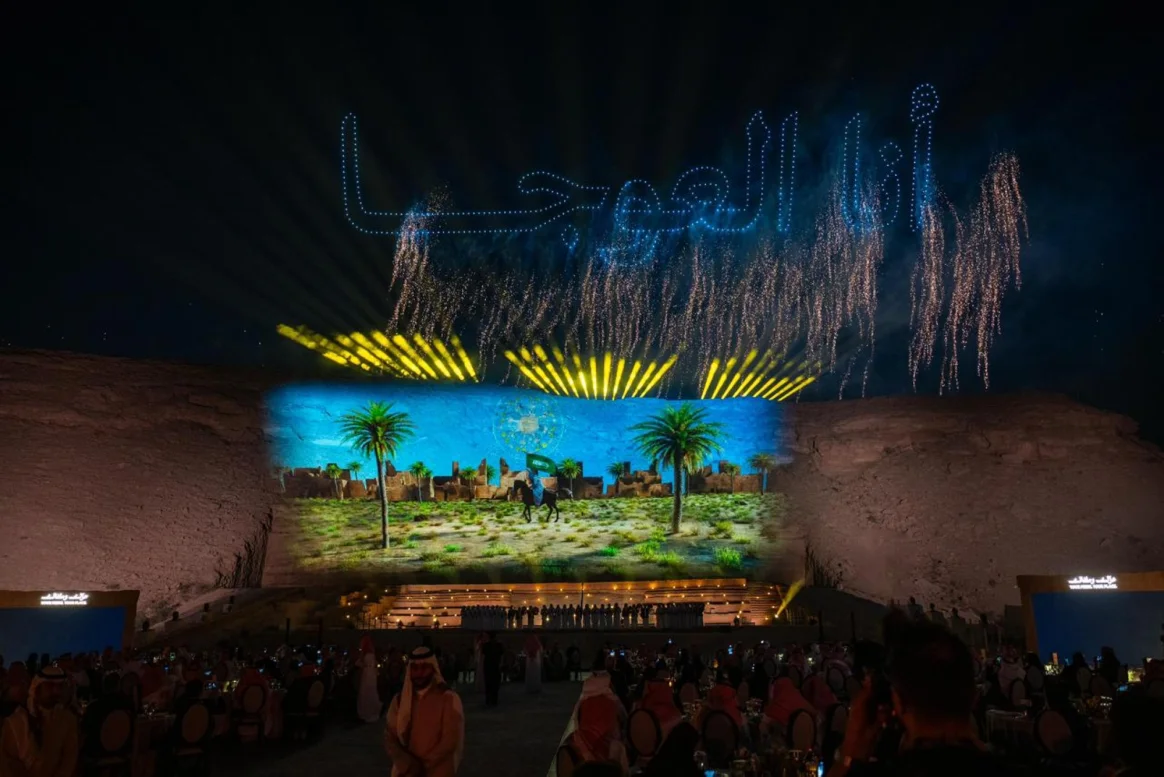 وشمل الحفل عرضًا فنيًّا بعنوان “أنا العوجا”، يروي قصة وادي حنيفة بصوت “العوجا” من لحظة التأسيس حتى حاضرنا المزدهر، في شكل لافت تميز بالإبداع البصري وتقنيات الإضاءة والدرون. تبع ذلك عرض مسرحي يحتفي بأبرز الأغاني الوطنية والمقطوعات التي تتغنى بالدرعية ونجد من خلال عرض “ميدلي” يحاكي الفنون الأدائية التراثية، شارك به مؤدو العرضة وفرقة استعراضية من الفتيات الموهوبات.