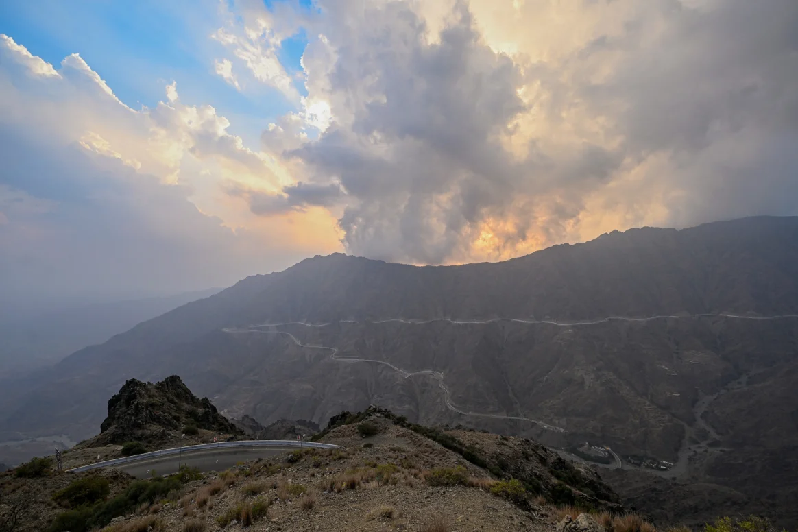 ويلتف السحاب على طول طريق عقبة الباحة، بين الجبال في مسار بانورامي، حيث حرص الزوار على التوقف عند نقاط الإطلالة لمشاهدة السحب وهي تهبط من قمم السراة نحو القطاع التهامي، في تجربة بصرية لا تُنسى.