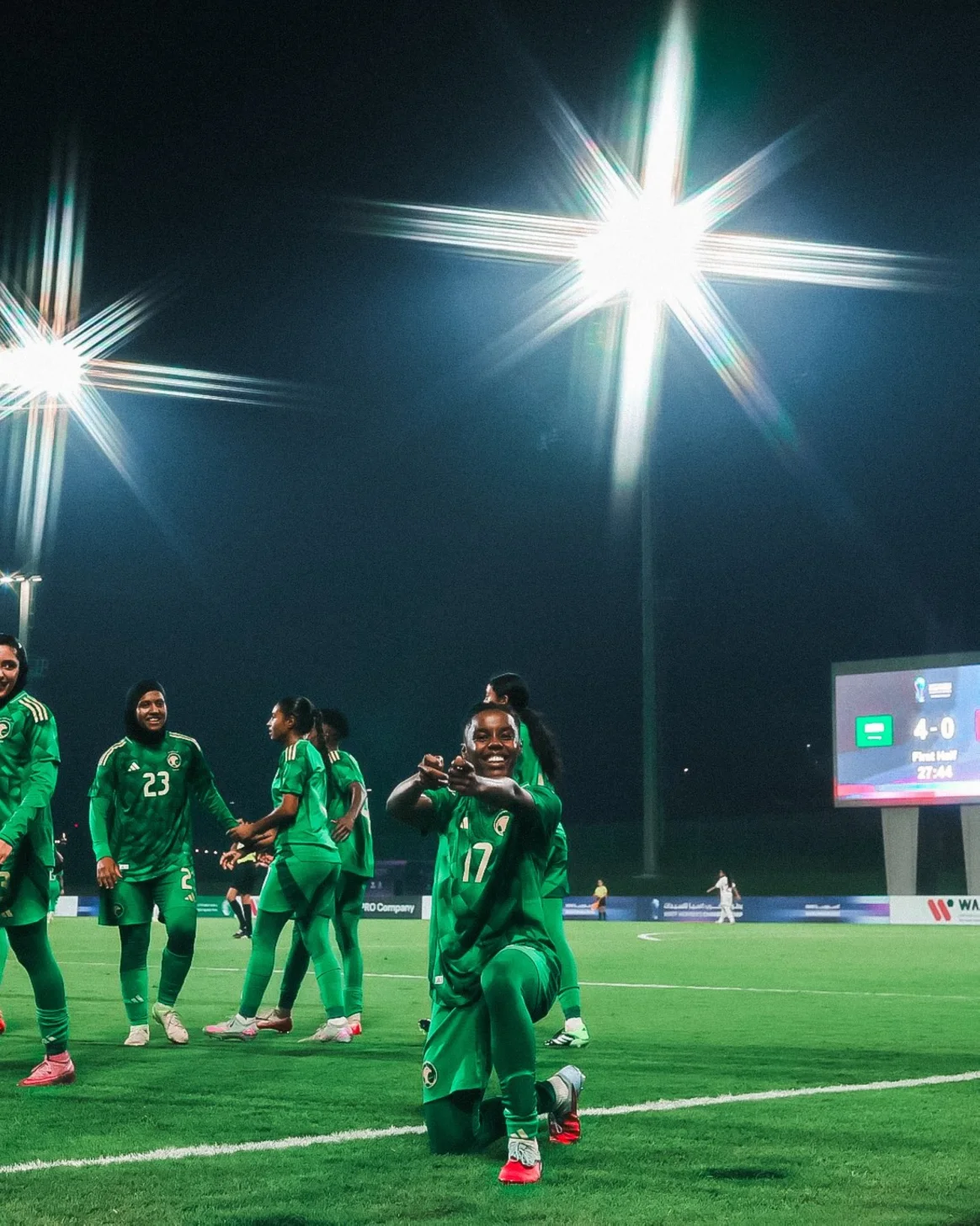 سجل خماسية المنتخب السعودي للسيدات كل من البندري مبارك “هدفين” ولانا عبد الرزاق وفدوى خالد وأميرة أبو السمح في الدقائق 3 و10 و26 و28 و42 من عمر المباراة.