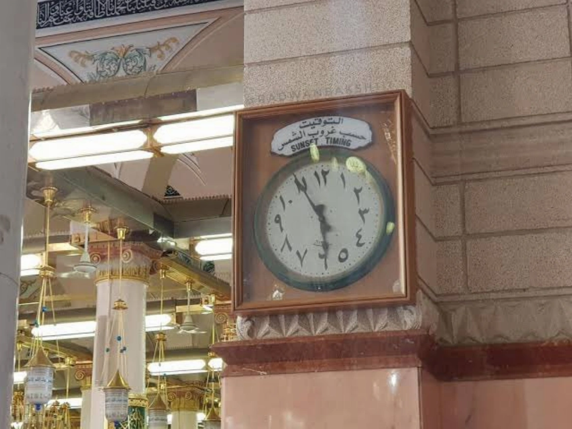 تحتضن أروقة المسجد النبوي ساعةً تراثيةً يزيد عمرها على 80 عامًا، ما تزال تعمل بنظام التوقيت “الزوالي”، الذي يعتمد على احتساب الوقت وفق حركة الشمس ولحظة الزوال، في صورة تجسّد جانبًا من الإرث الزمني المرتبط بضبط أوقات الصلاة.