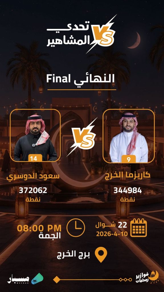 الصفحة الرئيسية منصات الخرجالخرج تختتم مسابقة “تحدي المشاهير” وسط حضور جماهيري كبير وتتويج “كاريزما الخرج” باللقب