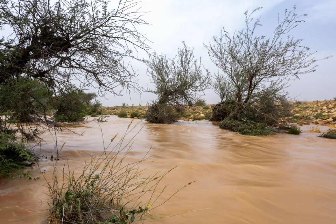 وامتد جريان المياه في وادي ضيدة والشعاب المحيطة به، ما أظهر تنوعًا لافتًا في التضاريس وعودة الغطاء النباتي وظهور بقع خضراء على أطراف الأودية.