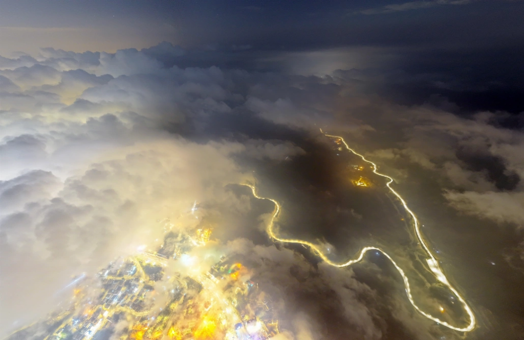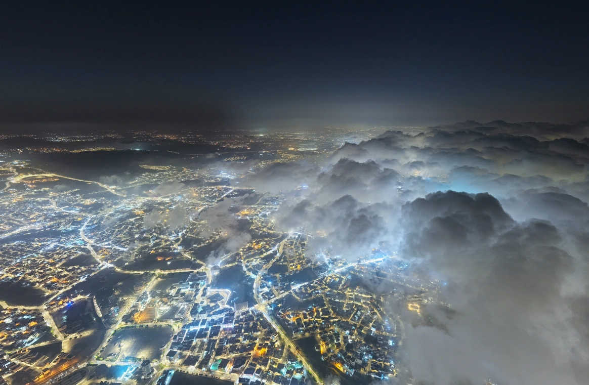 ومع حلول المساء، بدت مواقع شهيرة مثل منتزه السحاب وأبو خيال وجبل نهران في مشهد ضبابي بديع، إذ انحدرت طبقات الضباب على السفوح وتسللت إلى شوارع المدينة، مضفية أجواءً شاعرية جذبت الأنظار وعدسات الزوار.